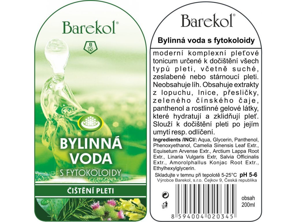 - obsahuje extrakty z lopuchu, lnice, přesličky, zeleného čínského čaje, panthenol a rostlinné gelové látky, které hydratují a zklidňují pleť