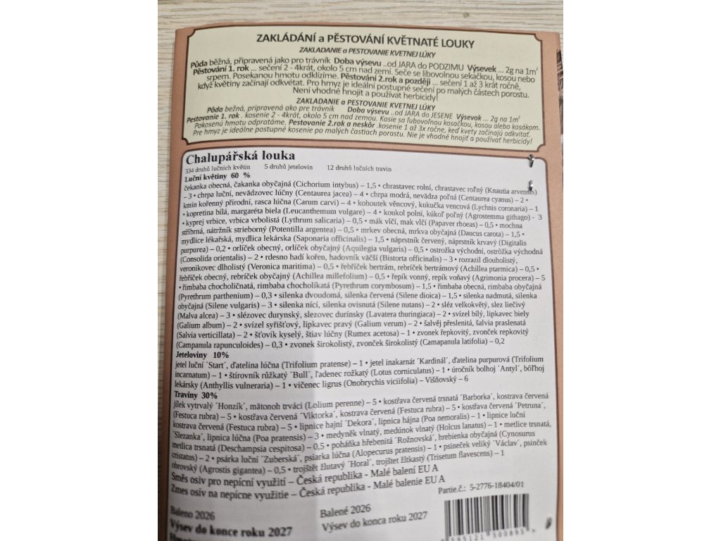 4. Výsevek semen květnaté louky je 1-2g na m2, hloubka setí je do 0,5-1cm.