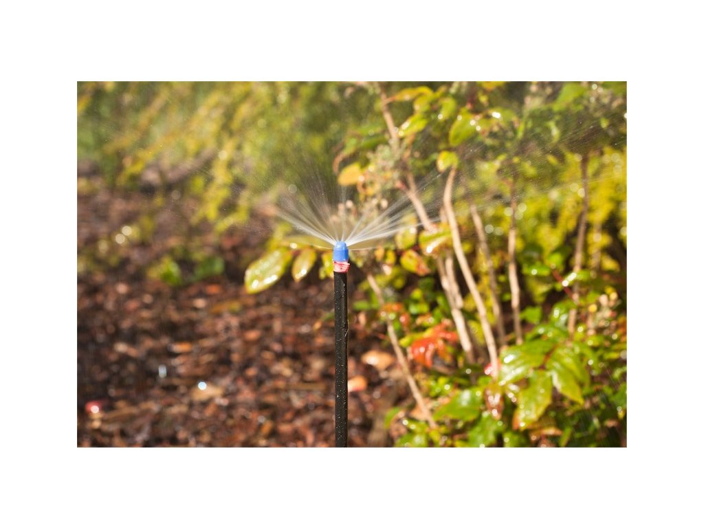 Na postřikovač můžete jednoduše našroubovat rozprašovací trysky s pokrytím prostoru 90, 180, a 360 stupňů.