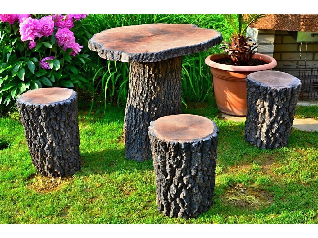 Betonová imitace dřeva Zahradní stůl + 4 špalky