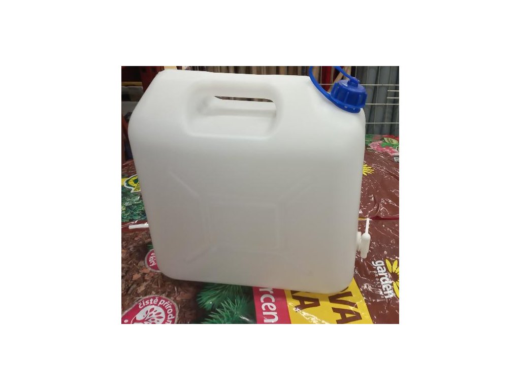 Kanystr plastový 15L bílý s ventilem, pro potravinářské použití, kvalitní a odolný plast polyethylen