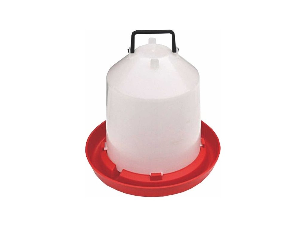 Praktická klobouková napáječka z odolné umělé hmoty vhodná pro slepice a další drobnou drůbež. Zajišťuje stálý přísun čisté vody a omezuje její znečištění.