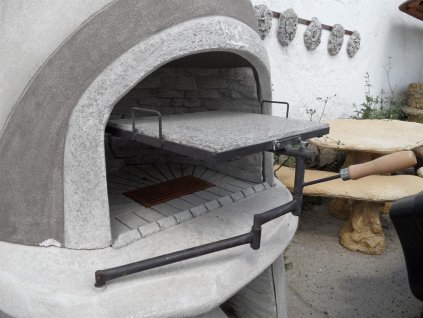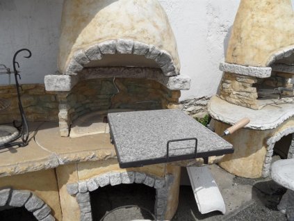 Zahradní betonový krb Čertova pec se liší od ostatních tím, že na samotné ohniště navazuje praktický odkládací pult.