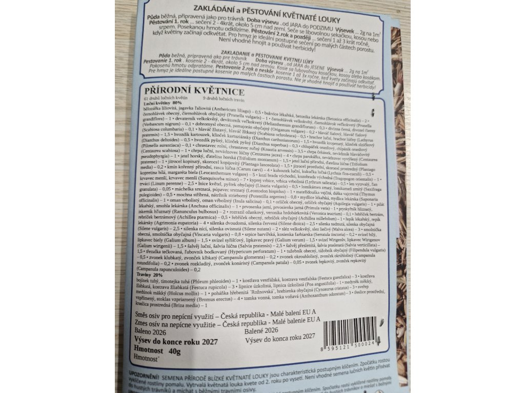 4. Výsevek semen květnaté louky je 1-2g na m2, hloubka setí je do 0,5-1cm.