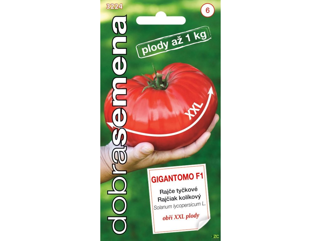 GIGANTOMO F1 - obří biftekové rajče dorůstající hmotnosti 700 – 1000 g. Plody překvapí nejenom velikostí, ale i plnou chutí a bohatým aromatem. Odrůda vhodná na záhon i do fóliových krytů. Dodržujte vyrovnaný vláhový režim, předejdete tak praskání plodů.