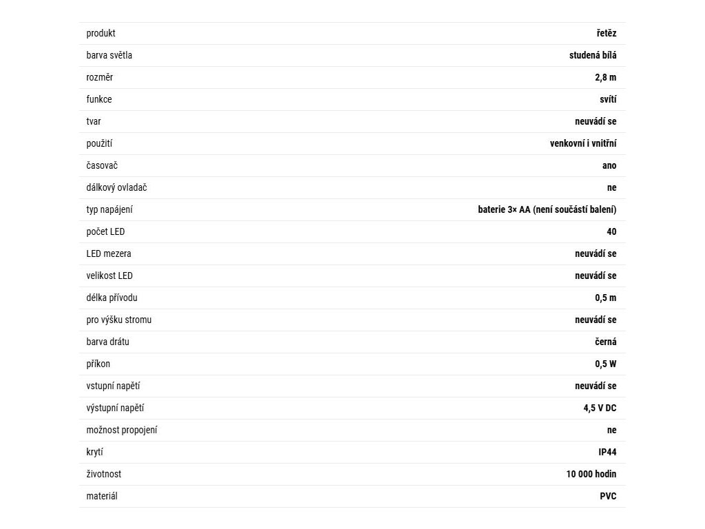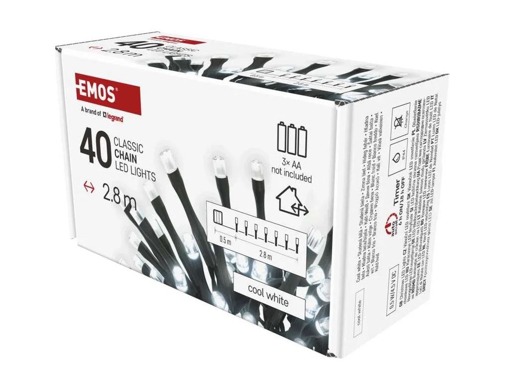 Řetěz 40LED XMAS 2,8m D4F001 3AA cool white