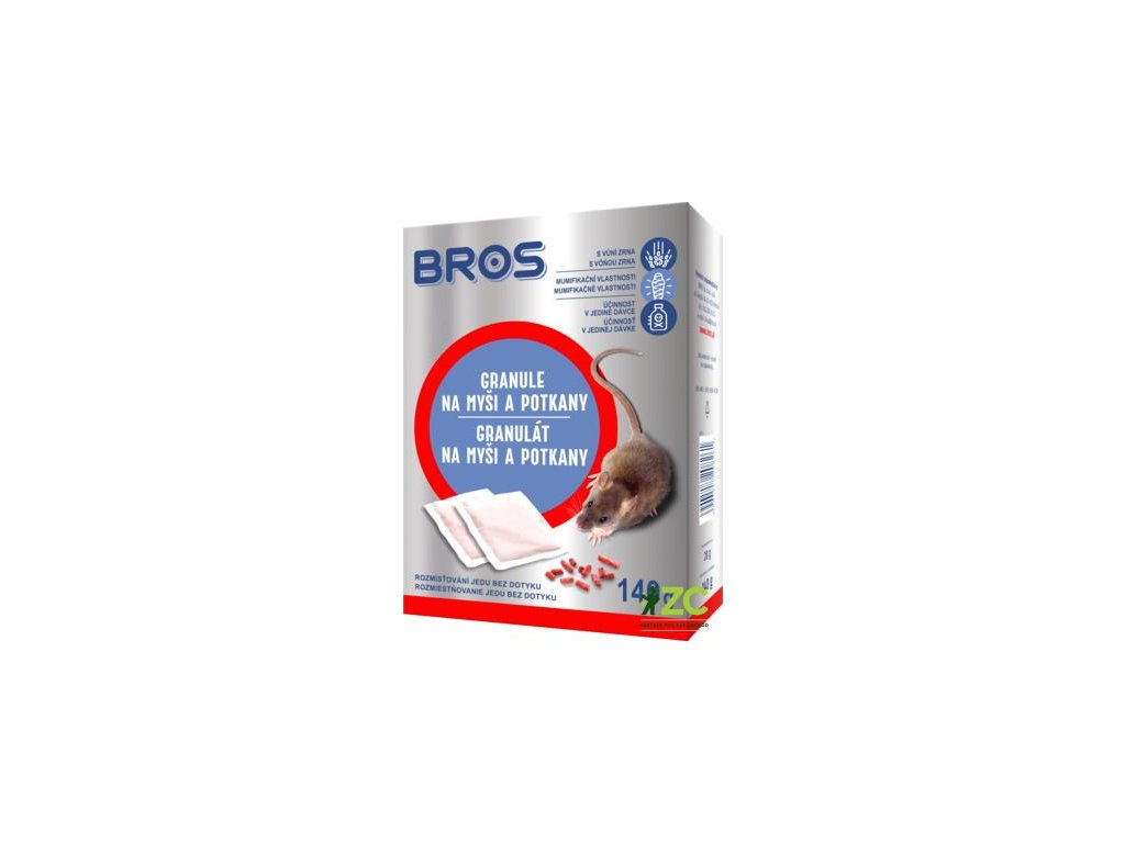 Nástraha na myši a potkany ve formě granulí. Nástraha je určena k přímému použití v deratizačních staničkách